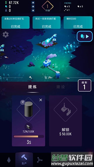 消耗科研点数发展各类增产技术,解锁更高效的开采方法与先进设备,持续提升产业等级。
