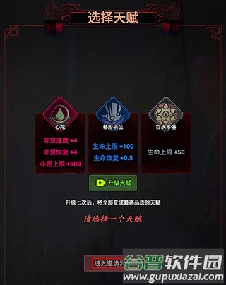 1、游戏初始,玩家可直接选择一个天赋踏入世界。