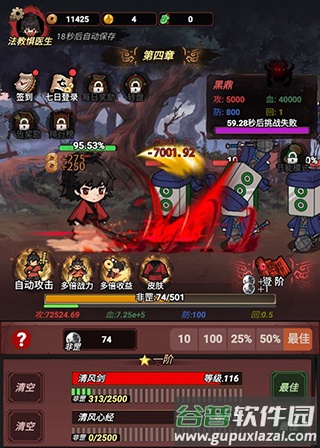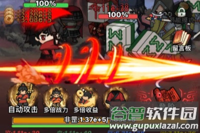 4、游戏内设有自动挂机、多倍战力与多倍收益三项额外增益;自动攻击开局可免费体验一段时间,其余两项需观看广告解锁。