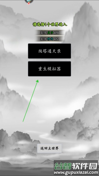 2.可见爬塔通天录与重生模拟器两种小游戏玩法;