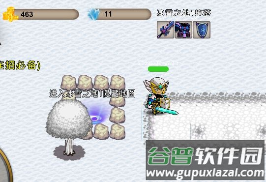 7. 冰雪1:在左下角区域,从石头的左下方使用冲刺技能进入。