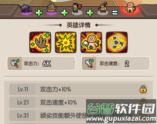 提升全体攻击速度,有一定概率进化,若进化失败则该单位会消失。