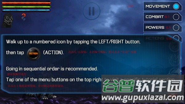 2、第二个选项是玩法教学,因翻译工作量较大,此处不做详细展开。该部分介绍了基础操作步骤,包含一些实用的连招技巧。
