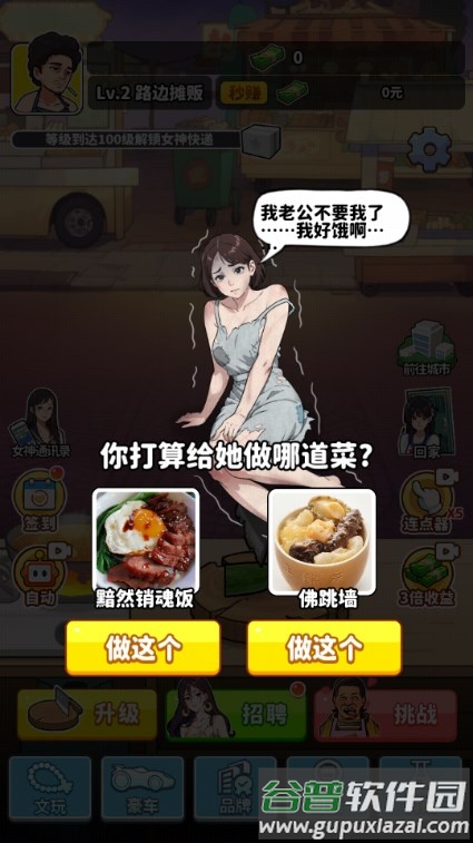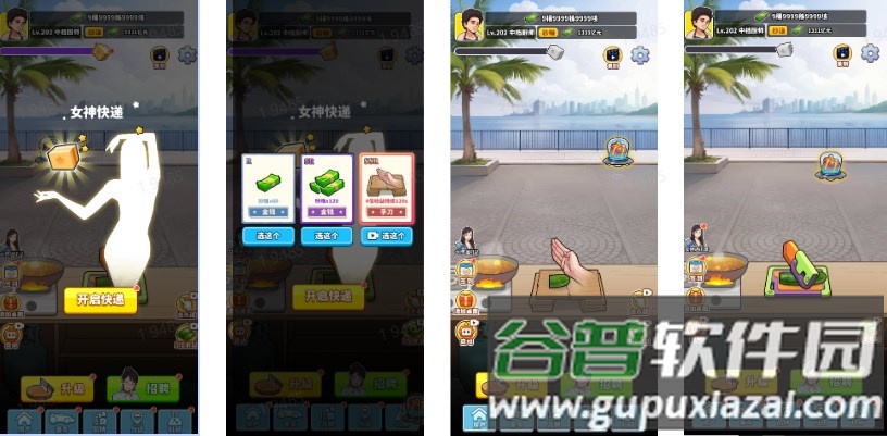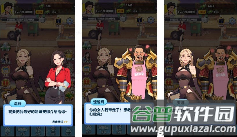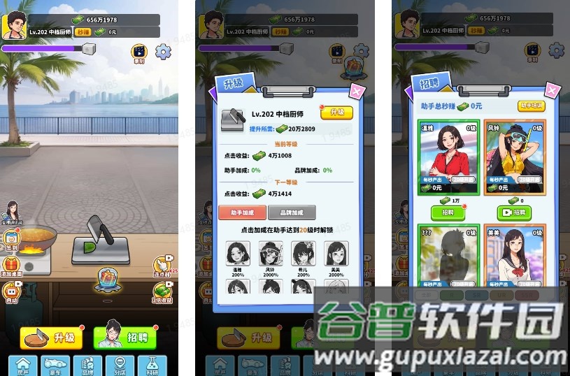 前往招聘界面,可以雇佣并升级美女助理,她们会提供持续的自动收入,同时形象会显示在游戏画面上;