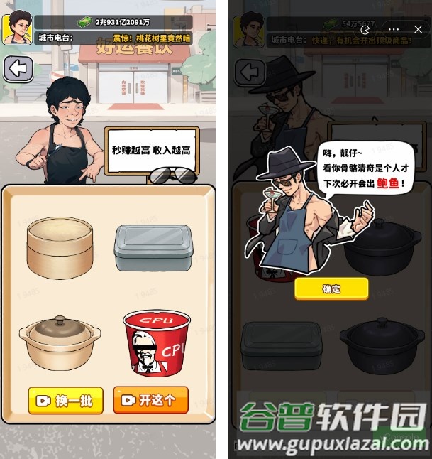 隐藏互动:将墨镜拖给场景中的男人,他会变为帅哥,下次开启盲盒必定获得鲍鱼并赚取大量金钱。