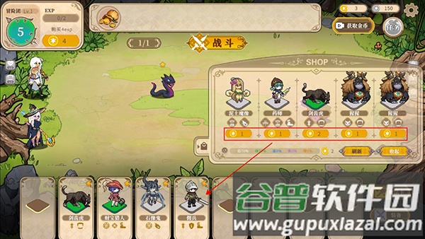 3、战斗界面右侧设有棋子购买区,集齐三个相同棋子可合成升级,提升其星级。