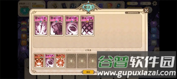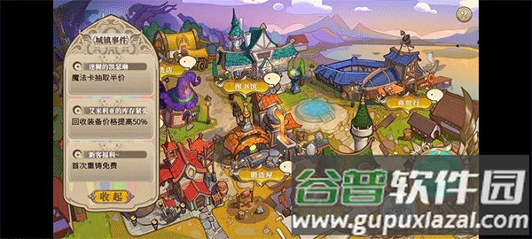 返回城镇后,触发事件使魔法卡合成半价;合成一张金卡,前期魔法卡用于过渡,金色或紫色卡牌可提供两个宝石槽位,镶嵌宝石能大幅增强强度。