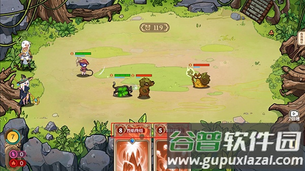 5、战斗双方自动交锋,玩家也可点击底部卡牌施放技能,加速击溃对手的进程。