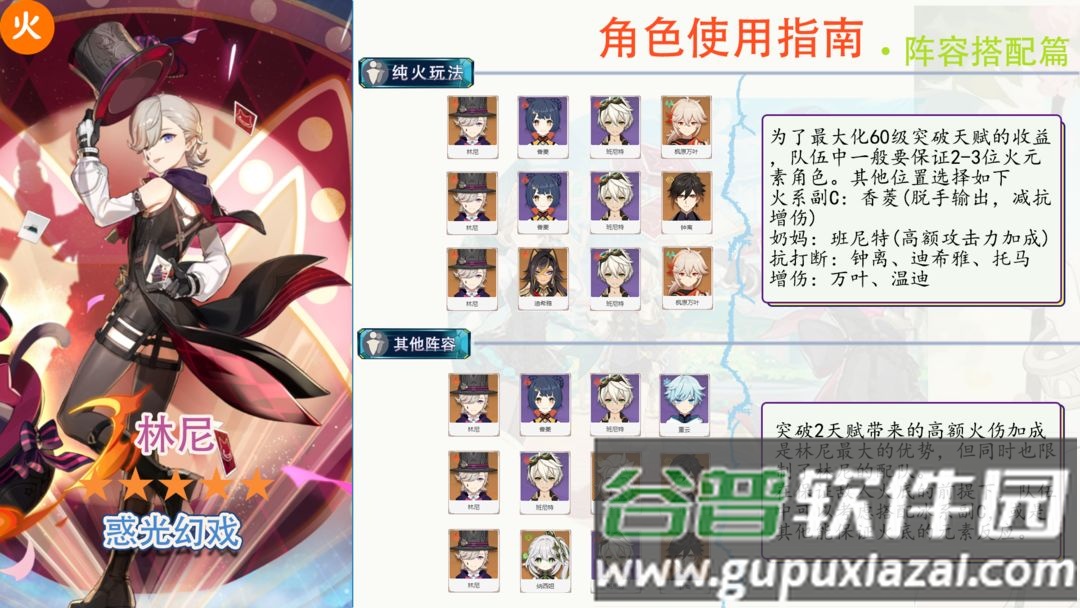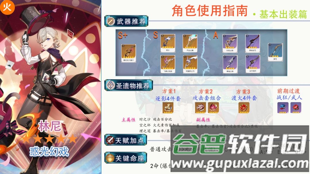 以下是快速了解林尼的圣遗物搭配、武器选择、天赋升级与阵容组合的简明指引。