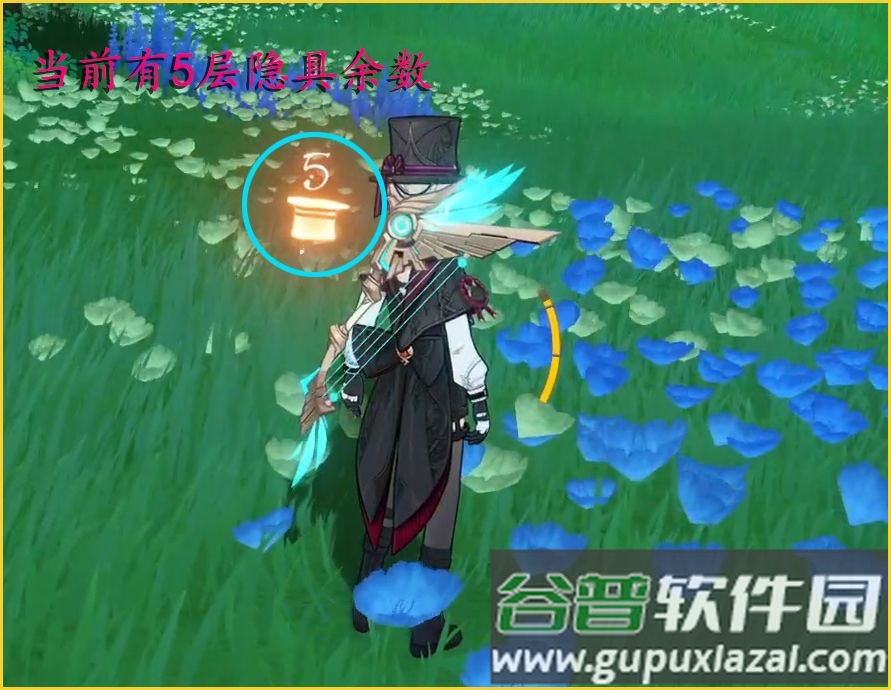 林尼发射二段蓄力箭时,若当前生命值高于60%,会消耗20%的生命值上限,从而获得一层“隐具余数”。隐具余数能够增强元素战技的伤害,具体效果将在后文说明。隐具余数最多可叠加5层,该效果会在脱离战斗30秒后消失。期间若林尼切换至后台,层数不会消失;只要角色处于战斗状态且未主动消耗层数,层数将一直保留。隐具余数的层数可以通过林尼角色模型左上角帽子旁的数字来辨识。