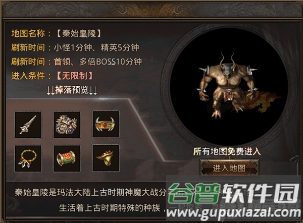 秦始皇陵中栖息着上古特殊种族;掉落苍茫系列装备。