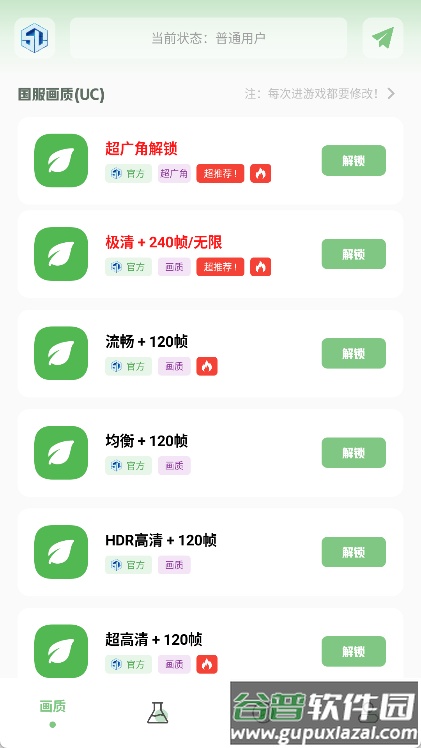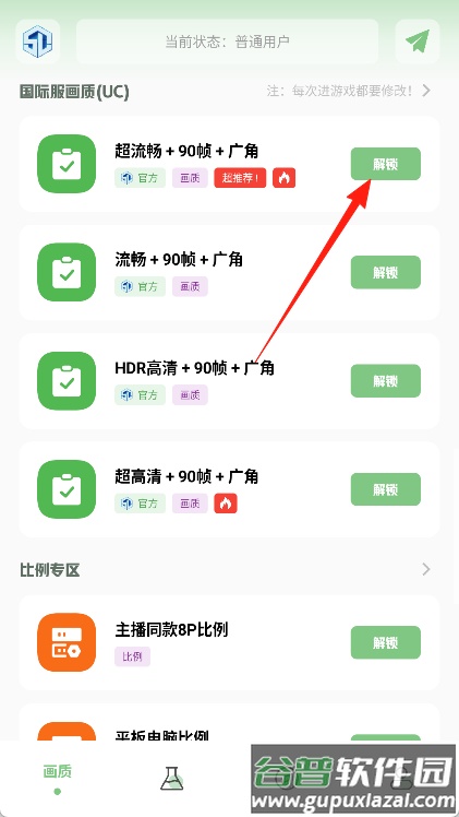 5、点击解锁按钮,即可将已选定的画质配置应用到对应的游戏之中。