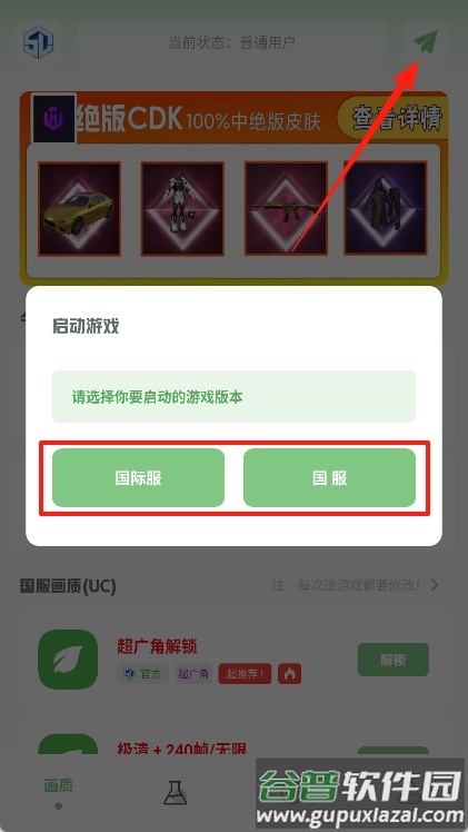 2、点击界面右上角的飞机图标,从中选择需要优化画质的游戏版本。