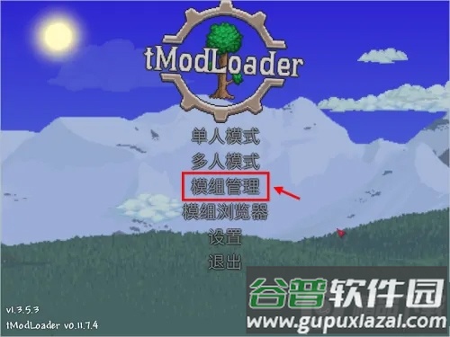启动tmodloader进入游戏,在主界面选择“模组管理”。