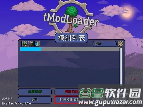 初始模组列表为空,需要玩家自行下载mod文件,点击“打开模组文件夹”。