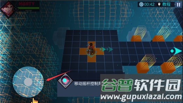 2、利用左侧虚拟摇杆操控角色进行移动;