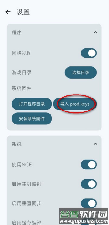 3.启动模拟器,在设备设置中加载存放在手机里的prod.keys文件。