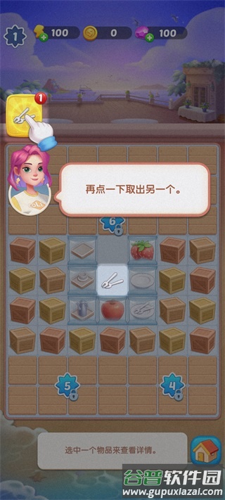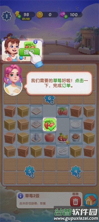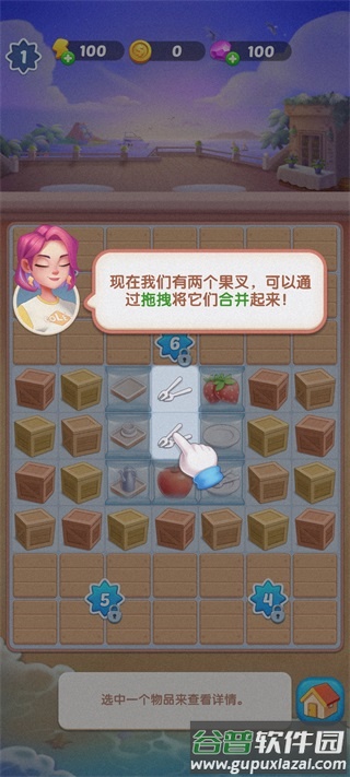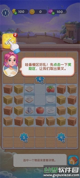 5、点击背包中的果叉,将其放置于备餐区内;