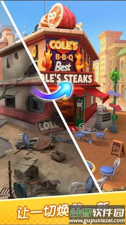 通过合成修复被焚毁的餐厅,令美食小镇重现活力;
