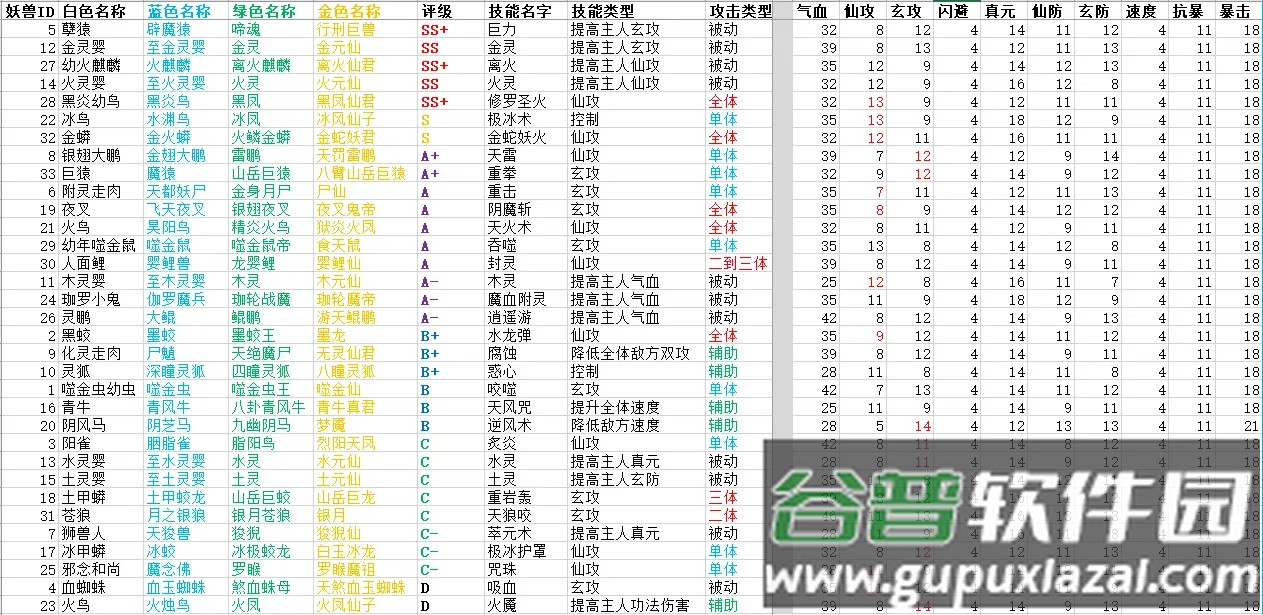简要推荐:剑修转职前可随意搭配,转血狂后选用魔猿与金灵婴;转魔源或青元可考虑火灵婴与火麒麟。方士推荐火灵婴与火麒麟。法士转职前可选择黑炎鸟、雷鹏、冰鸟或金蟒。