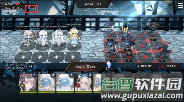 二、主线推图要点。开局拥有15点费用,每通过一个关卡会恢复3点,显示在画面左上角。