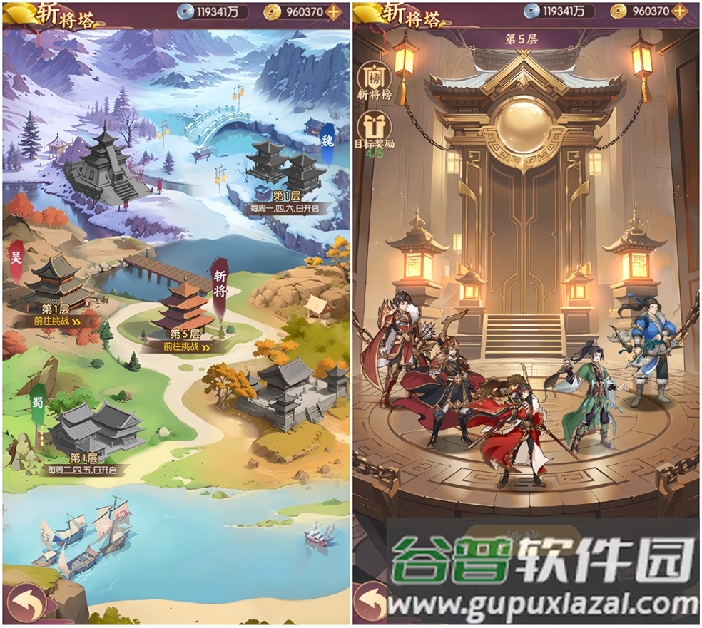 斩将:过关斩将,所向披靡。选择此副本后,将进入一座由多座塔楼构成的挑战地图。每座塔楼对应不同势力的敌人,且各塔楼的开放时间有特定规律。例如蜀塔通常在周二、周四、周五与周日开放,而魏塔则安排在周一、周四、周六与周日。进入塔楼前,界面会显示守关队伍的信息,便于玩家调整己方阵容,形成克制关系。