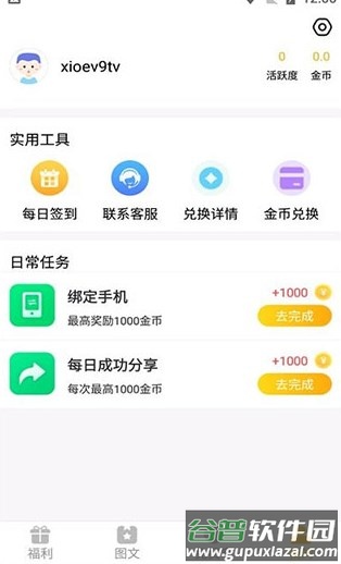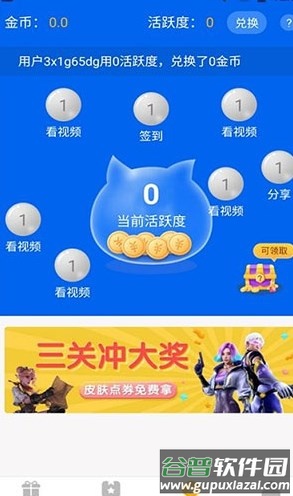 3、在免费拿板块通过完成指定任务获取活跃度,活跃度可转化为金币;