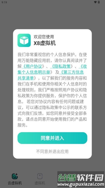 2、启动软件,阅读并同意相关的用户隐私协议。