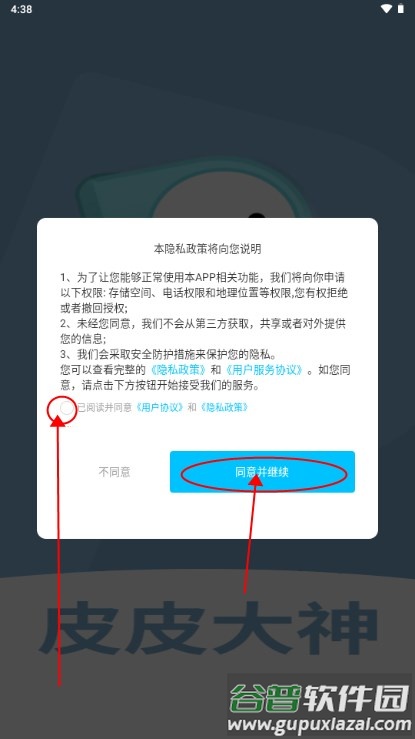 2、打开软件后,阅读并同意相关的用户隐私政策;
