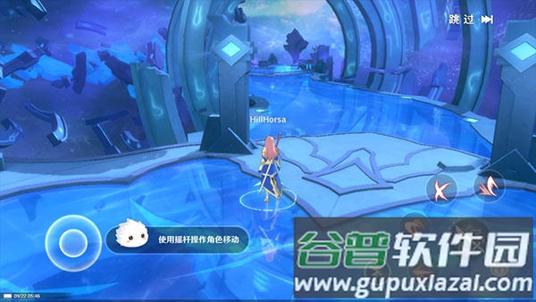 5、随后开启新手引导,左下角摇杆控制角色移动,右下角设有普通攻击按钮与四个角色技能键。