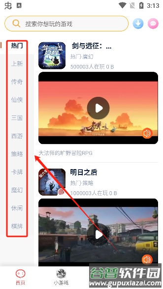 2、通过侧边导航栏可以轻松切换游戏分类,快速找到感兴趣的类型;
