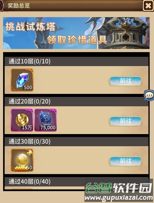 1.首次通过神之塔楼层可获得进阶石奖励,每逢整十层还可额外领取一份通关奖励。