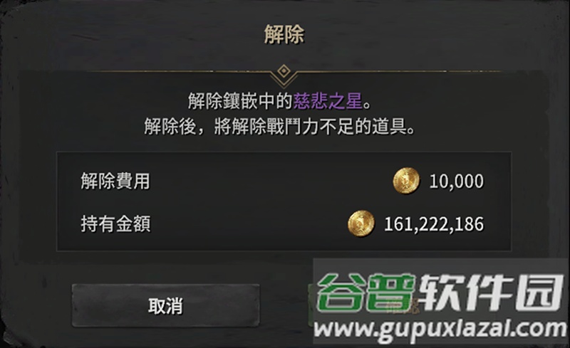 选择已镶嵌的道具或对应栏位即可进行卸下。每次卸下单个栏位需消耗一万金币作为手续费用。