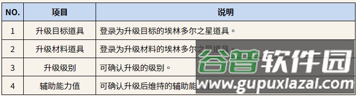 * 除目标道具外,其余材料道具在升级后会消失;升级过程必定成功。