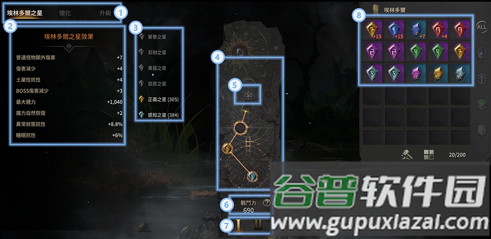 埃林多尔之星是依托亚特兰斯地区专属道具的新成长体系。玩家可在六个栏位分别镶嵌荣誉、忍耐、勇猛、慈悲、正义与感知之星,从而激活额外的属性加成。