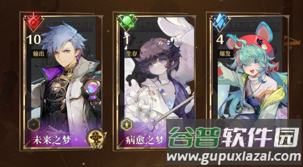 输出角色:能够提供持续伤害,但爆发力较弱,该位置不限流派;例如未来之梦、考试之梦、战争之梦、愚者之梦、暴富之梦、云之梦、弓箭之梦、深海之梦、社恐之梦、解答之梦、老铁之梦。
