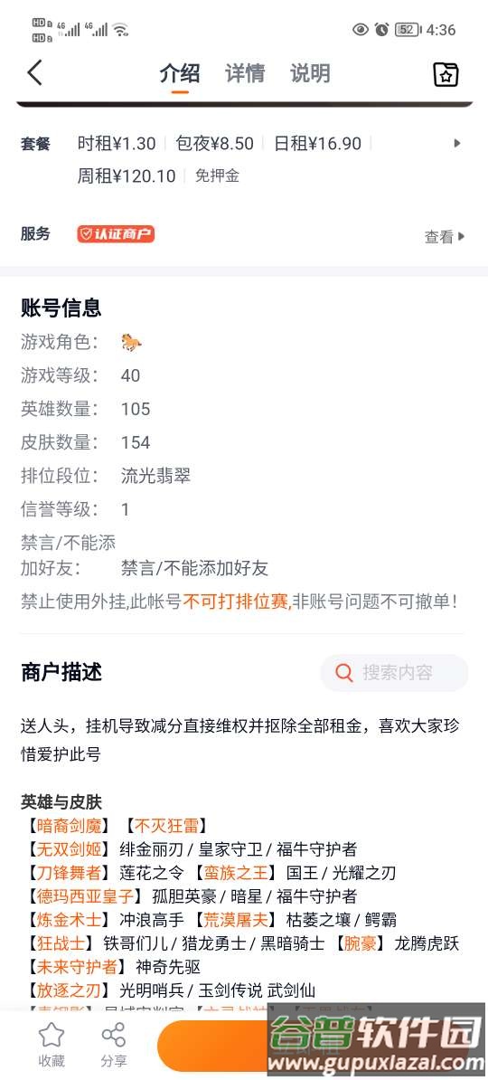 5、若出现账号无法登录或与描述不符的情况,请及时投诉,超时处理将按已使用时间扣除租金。