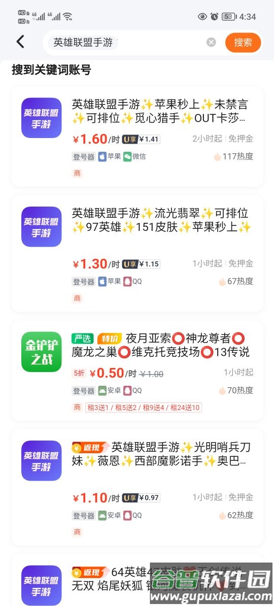 2、玩家能够快速租用到高端账号,即刻体验王者荣耀、和平精英、英雄联盟等多款热门游戏。