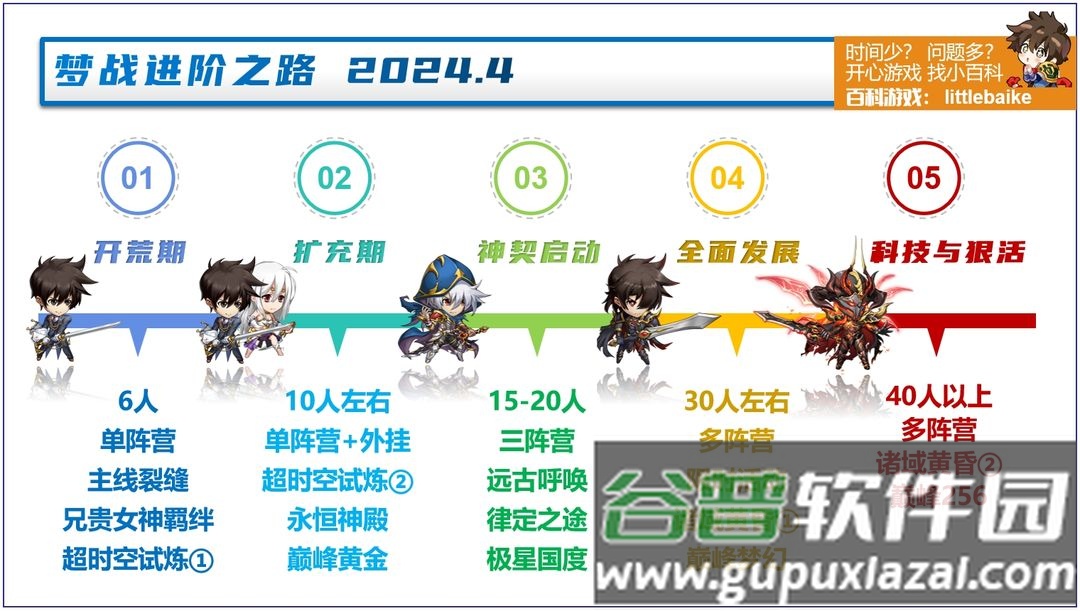 之后可为第二、第三阵营做准备。确定发展方向后,可先培养超绝手,其他英雄如坦克与奶妈也可视情况提前练习。坦克中前三位最为主流,迟早都需要培养;强度主要取决于当前版本中对应小弟的表现。奶妈方面,图中四位均十分优秀;若玩帝国、战略或转生阵营,也可培养宰相弗洛朗蒂娅,游戏体验较好。最后还列出几名可外挂任何阵营的强力输出,培养这些英雄绝不会亏。扩充期需完成兄贵、龙、超时空等基础秘境副本的开荒工作,同时开荒律定本获取铸纹。务必通关六十五级神殿,这样就不再缺少羁绊资源。升至七十级后,可配合佣兵挑战巅峰竞技场黄金三段位,奖励大量附魔券与皮肤;若无法通关可寻求攻略帮助。