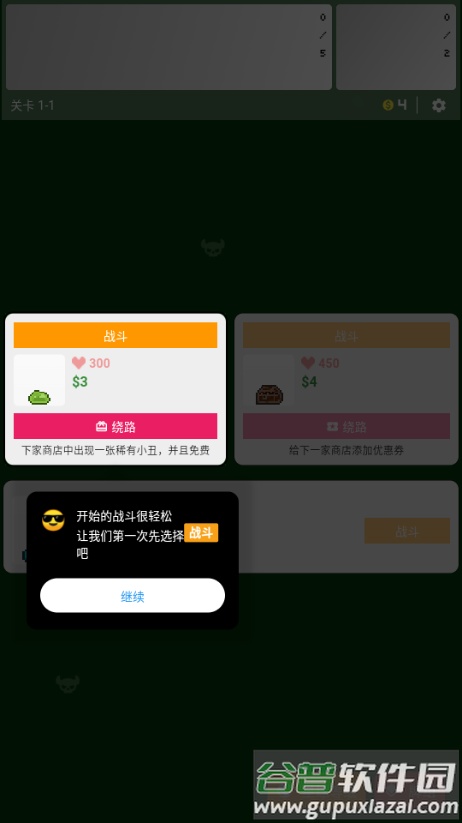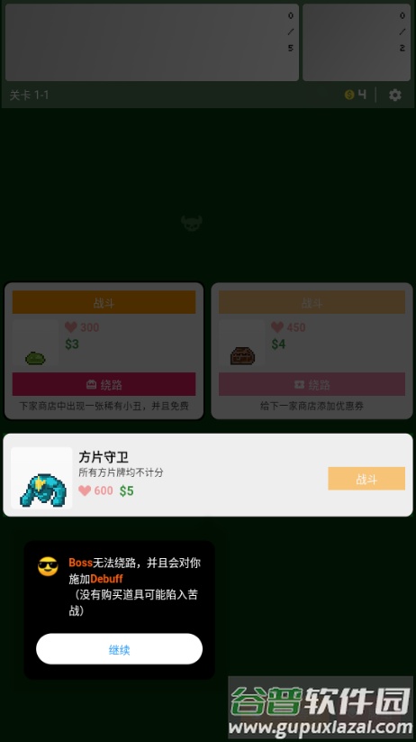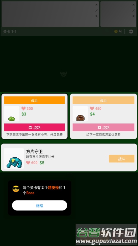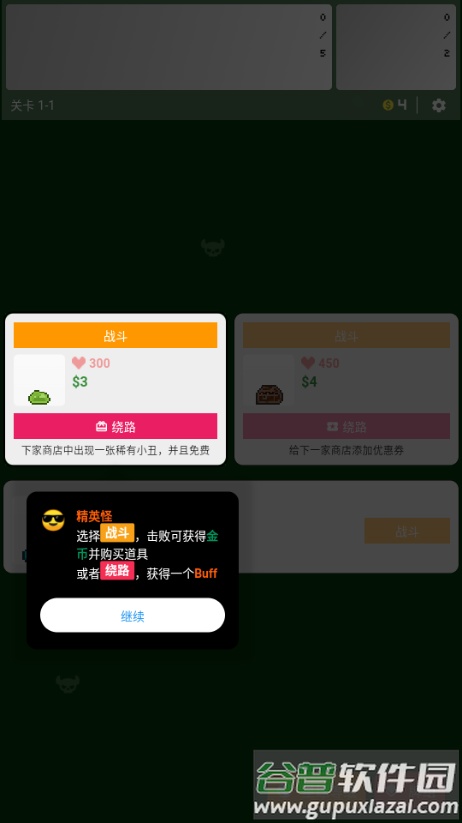 4、面对精英敌人时,选择战斗胜利后可获得金币用于购买道具,也可以选择绕行直接获取一个增益效果;