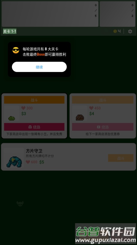 2、单局游戏包含八个主要关卡,成功战胜最终的首领即可赢得胜利;