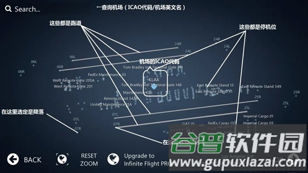 2、机场选择:指南针图标用于选择起降机场,下载方式同上;