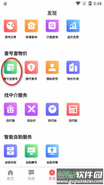 2、在发现页面中找到并进入“搜万宝楼号”功能。