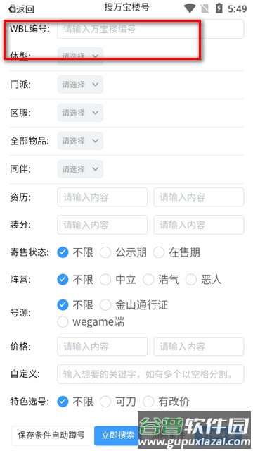 3、在搜索页面,可以直接输入万宝楼编号或角色相关信息进行查找。