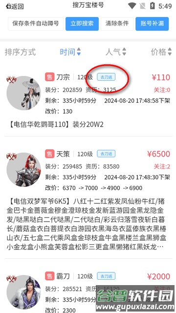 3、可以尝试使用筛选功能,按上架时间、价格高低等方式对结果进行排序,以便更精确地定位目标账号。