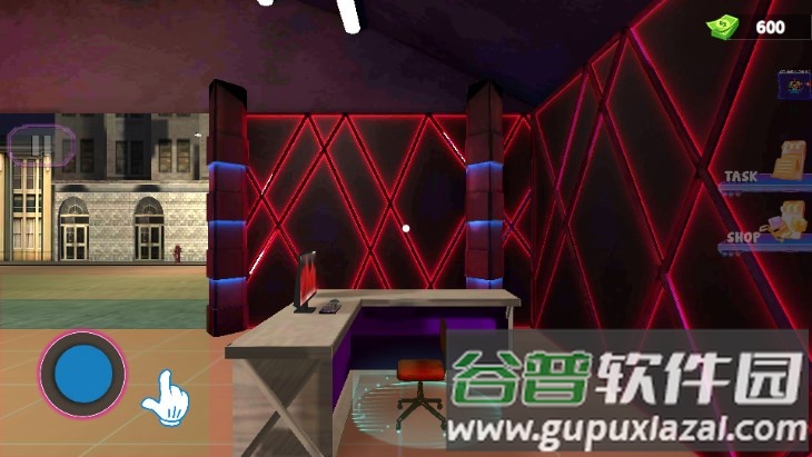 4、进入游戏后,左侧虚拟摇杆控制角色移动,右侧则负责调整视角方向;