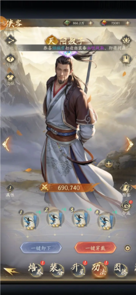 铜币用于侠客升星;角色经验提升玩家等级;进阶丹用于侠客突破与升星;元宝可在游戏内购买各类礼包。