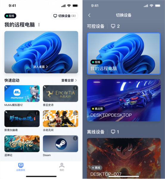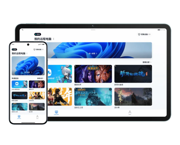 支持通过手机、平板、Mac或游戏掌机远程控制电脑。通过技术优化与专网直连,实现了极低的操作延迟,远程玩游戏、操作模拟器、移动办公或协助他人时,都能获得如本地操作般的流畅感。