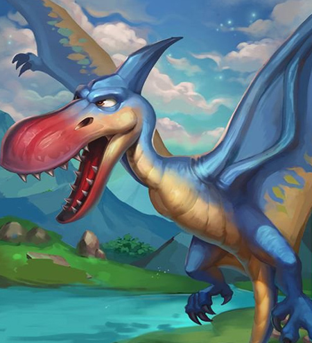 风神翼龙是一种生存于晚白垩纪的翼手龙,其翼展超过十一米,是目前已知最大的飞行动物。在游戏中,属于不朽品质的风神翼龙收起翅膀蹲踞时显得威风凛凛;它长长的喙部拥有强大的啄击力,足以捕食小型霸王龙。它的移动速度略快于古神翼龙小队,生命值则高出许多,属于各方面能力均衡、适合外出探索的恐龙。