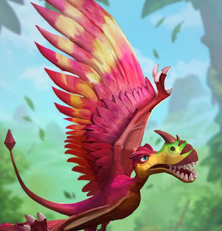 双型翼龙因其颌骨前后部牙齿形态不同而得名,生活在约一亿五千万年前。游戏中的它羽色鲜艳,宛如古代传说中的凤凰。它属于稀有品质,定位偏向攻击,生命值与资源采集能力在飞行龙中处于上游。它是所有恐龙中飞行速度最快的,效率至关重要,带着它出战必定引人注目。